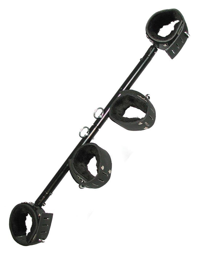 The outside cuffs are swivel-mounted, permitting slight movement and measure from 5"-10". Wrists or ankles can be held inside or outside interchangeably.